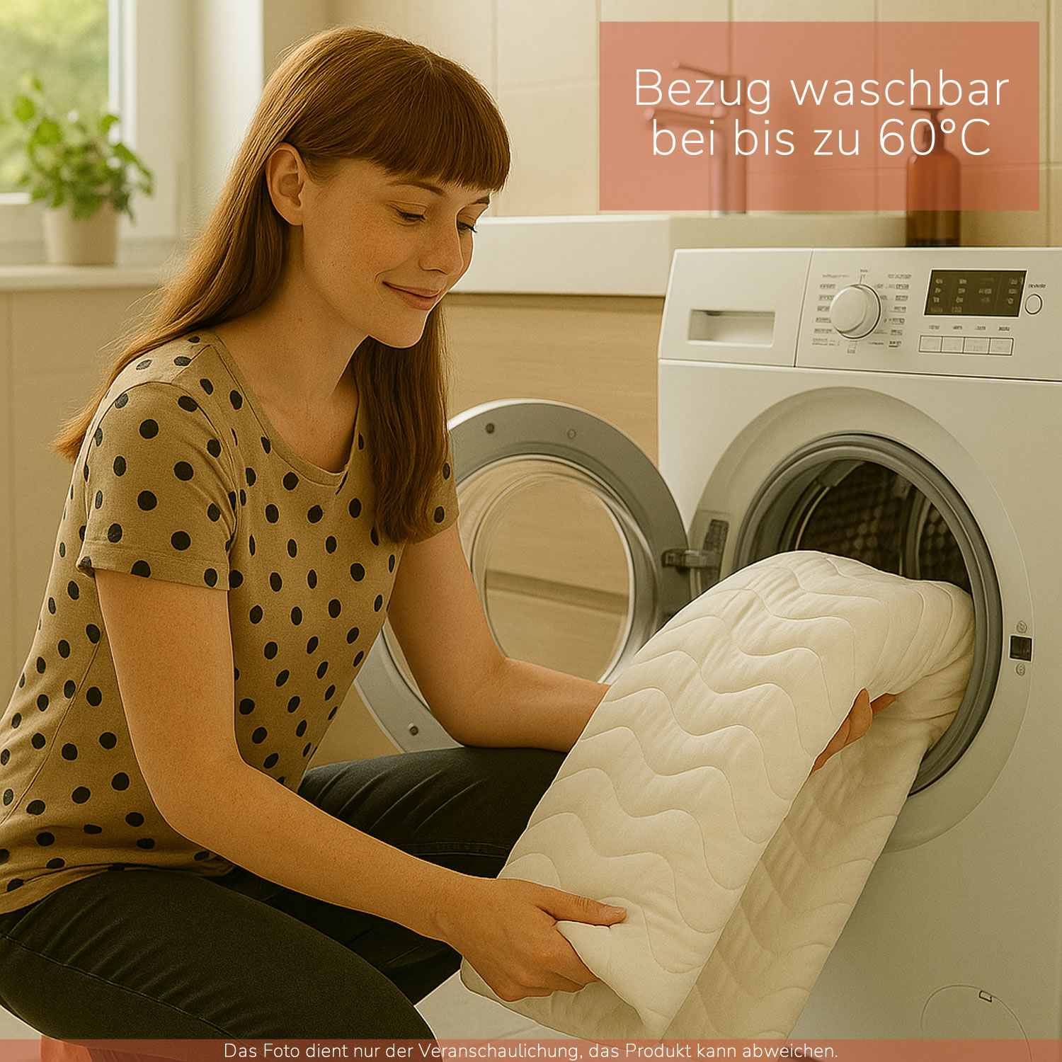 Pflegeleicht & hygienisch: Waschbar bis 60 °C im Pflegeleicht- oder Feinwaschprogramm – ideal bei Allergien und für frischen Schlafkomfort.